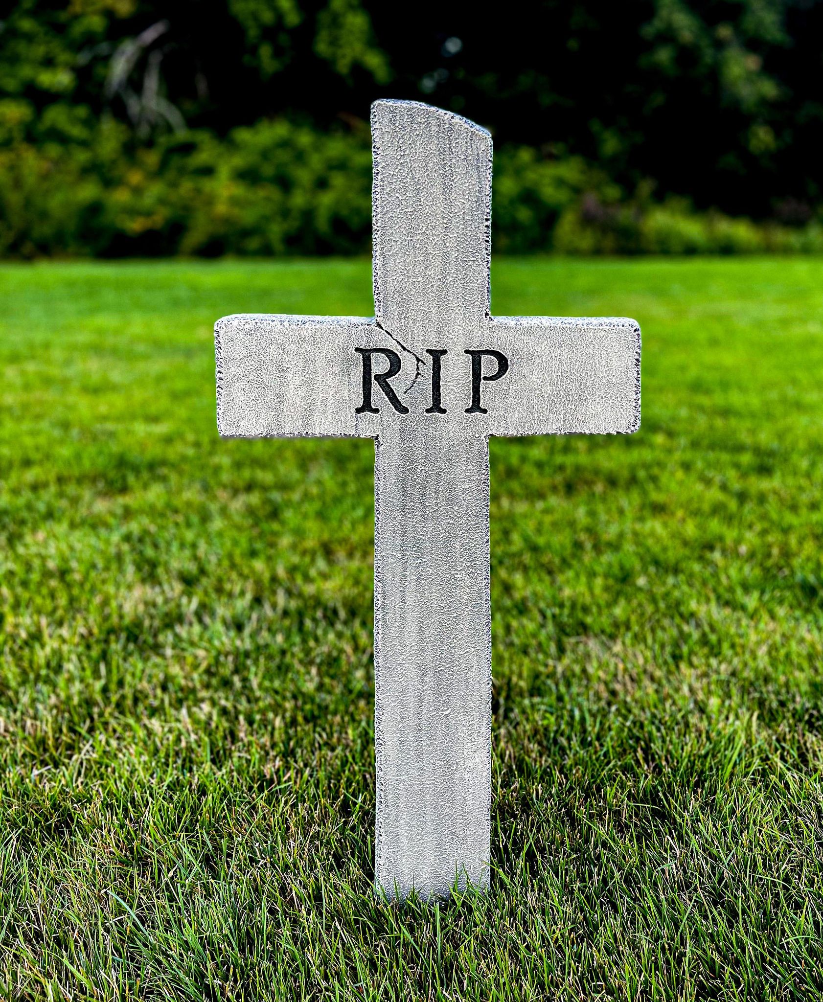 RIP Cross Handmade Custom Halloween Tombstone Measures 28” Tall x 14" Wide x 2" Deep (Rest in Peace)