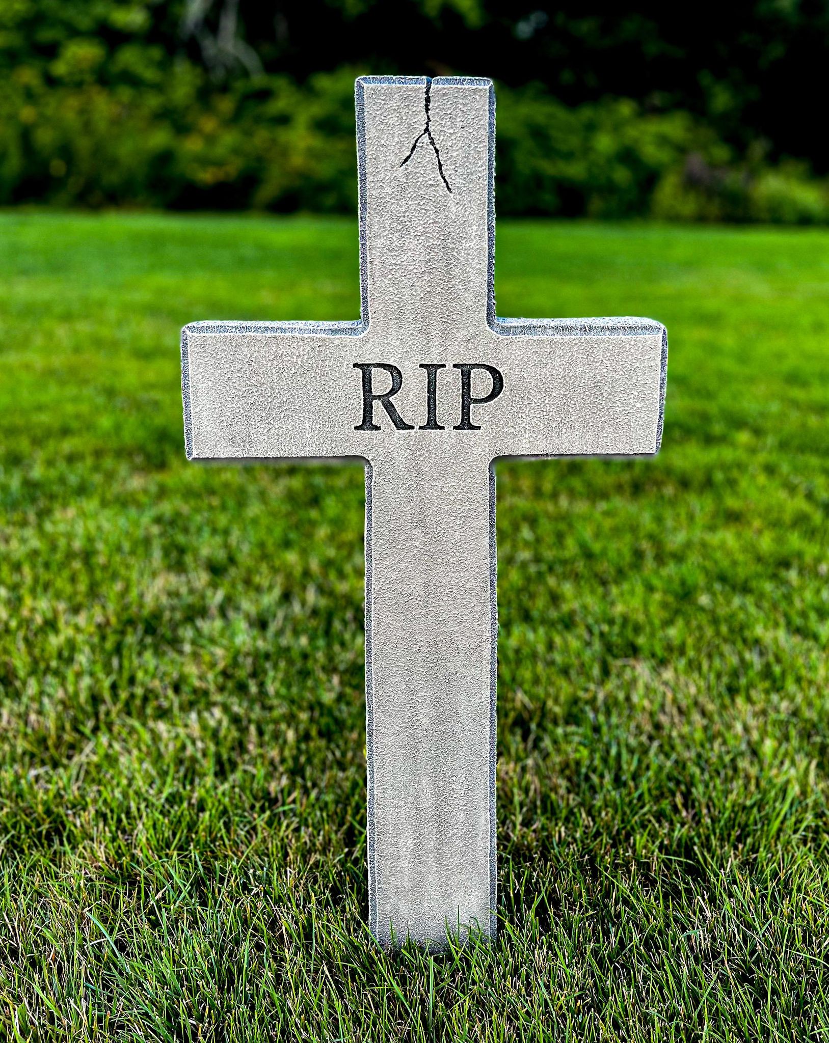 RIP Decorative Cove Edge Cross Handmade Custom Halloween Tombstone - Gravestone Halloween Decor Yard Art