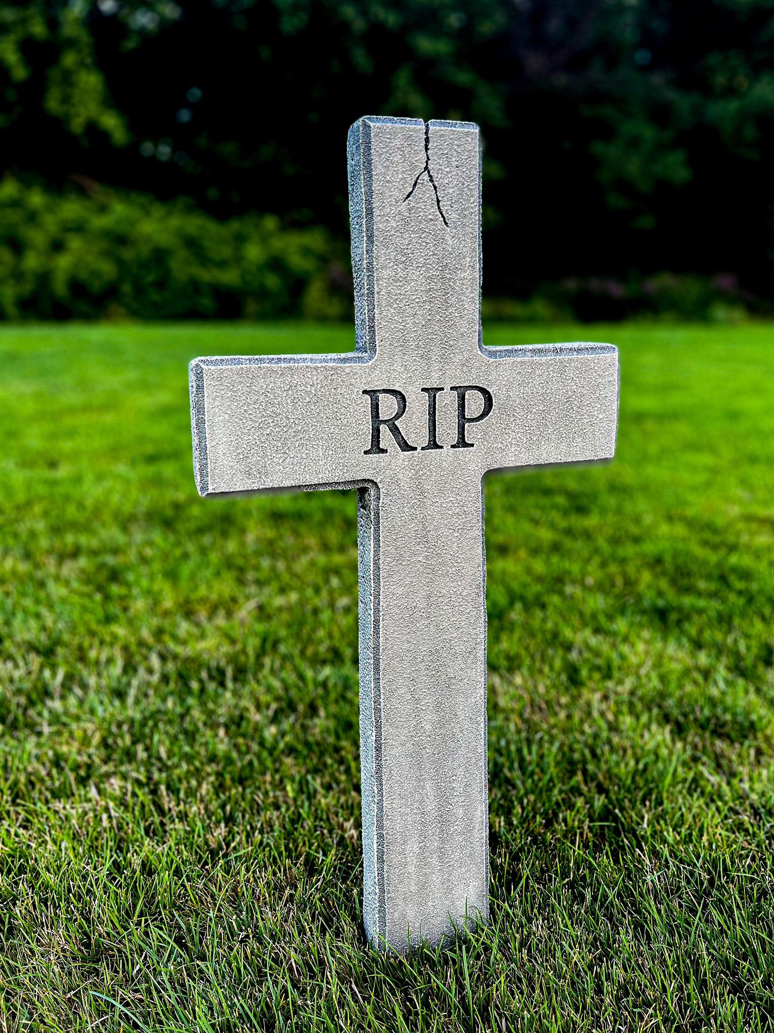 RIP Decorative Cove Edge Cross Handmade Custom Halloween Tombstone Measures 28” Tall x 14" Wide x 2" Deep (Rest in Peace)
